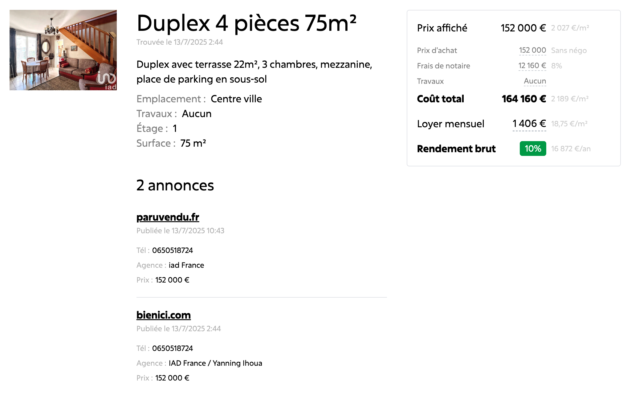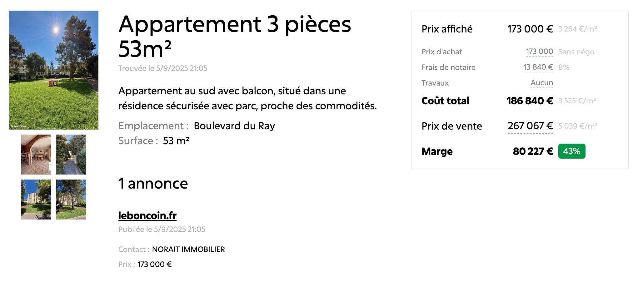 Nous analysons chaque jour en temps réel toutes les annonces immobilières pour dénicher les pépites, ces biens en dessous du prix du marché et qui correspondent à votre stratégie d’achat-revente ou de location.